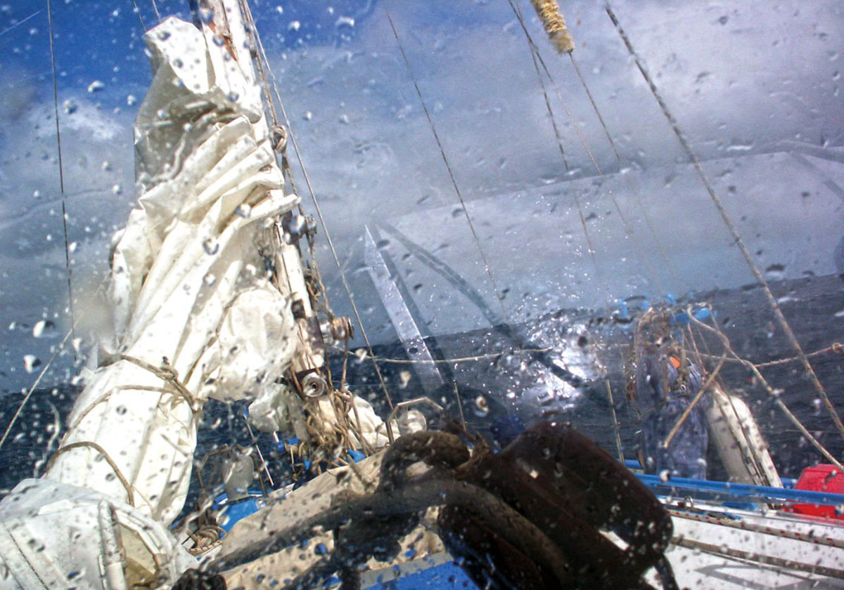 I noticed one of the steering lines on the Monitor wind vane was chaffing through the outer jacket and replaced it with a new line while conditions were still mild.